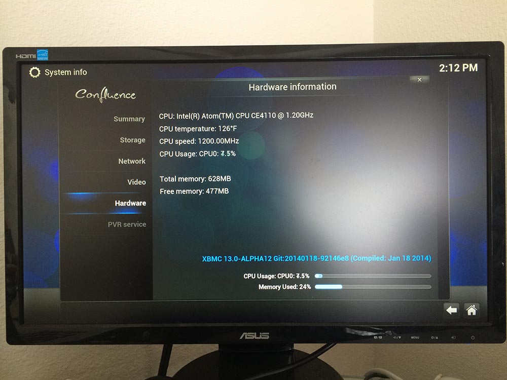 Boxee Box – XBMC – System Info Hardware (CPU)