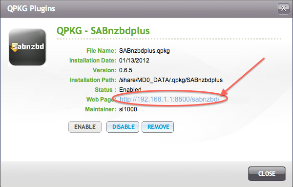 In case you forgot, simply go back the “QPKG INSTALLED” tab under Home → Application Servers → QPKG Plugins, and click the QPKG you’d like to find the link of to see this screen again.
